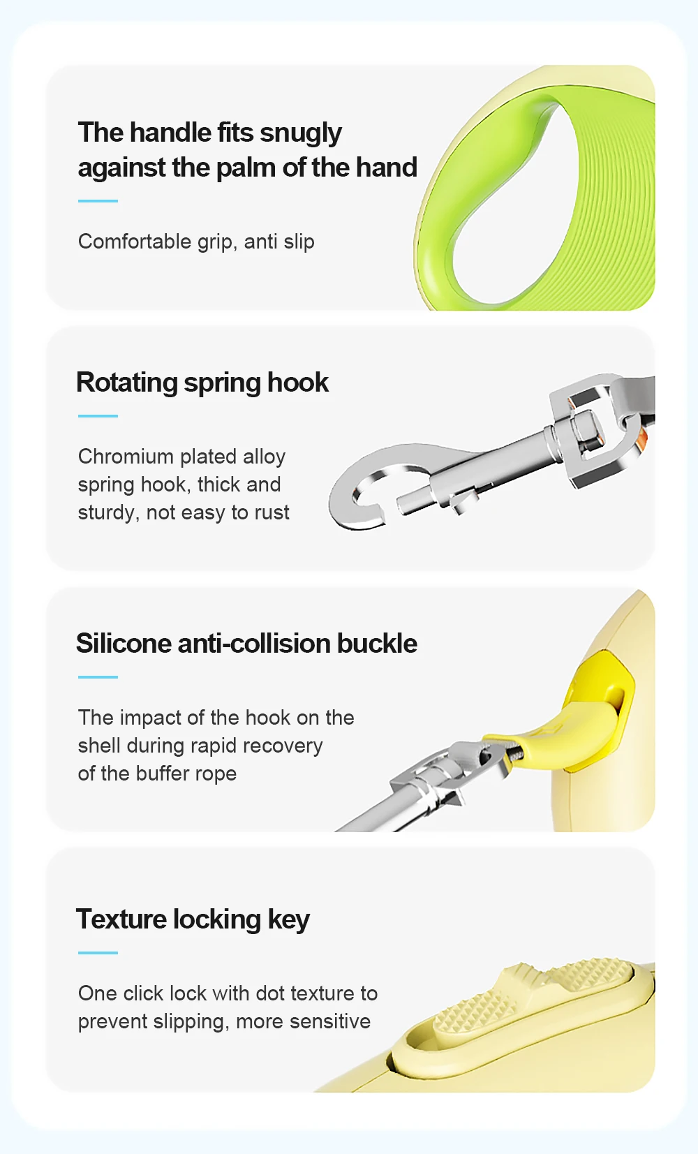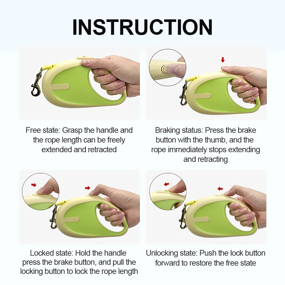 11. Always hold the handle of the retractable leash when walking your dog so that you can press the brake button in time to respond to and prevent any unexpected situations.